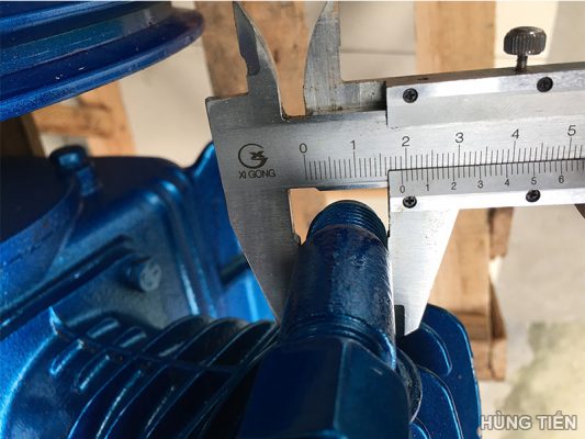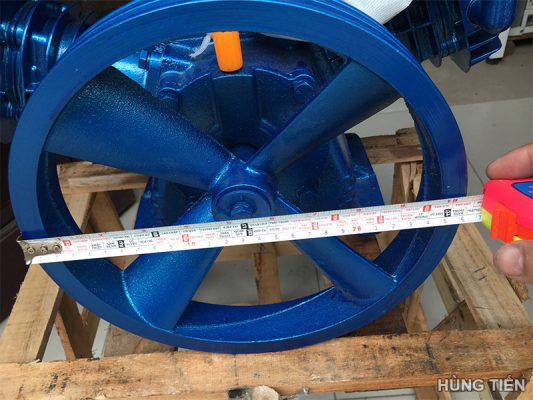 Đường kính puly khoảng 265mm. Đầu nén sử dụng 2 dây curoa cho máy chạy khỏe lên hơi tốt.