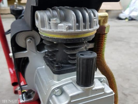 Đầu nén đơn xilanh có bầu chứa dầu đầy đủ nút thở dầu,mắt thăm dầu.Động cơ dây đồng kèm tụ CB660.Có cánh quạt tản nhiệt gắn đầu trục có zơle nhiệt chống quá tải.