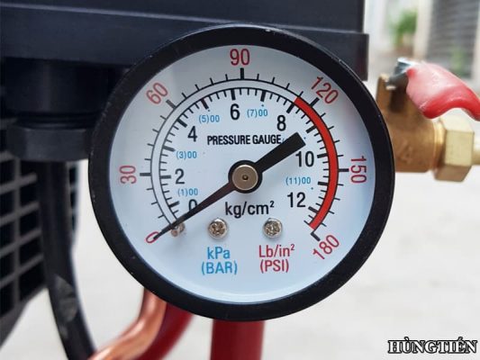 Theo dõi áp lực khí trong bình.Căn cứ đồng hồ để tăng giảm áp làm việc cho máy theo ý muốn.Giới hạn 8kg/cm².