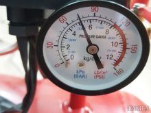 Đồng hồ chỉ thị áp lực trong bình chứa giới hạn đến vạch đỏ thang đo đơn vị rõ ràng để khách hàng kiểm soát kĩ thuật khi sử dụng.