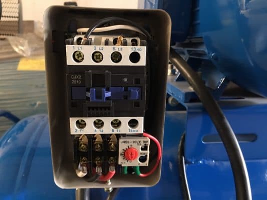 Bộ khởi đấu điện 3pha tại chân L1,L2,L3 sao cho khi máy chạy hoạt động .Bánh đà quay đúng chiều chỉ định để tạo gió làm mát đầu nén.Khi máy quay ngược chiều chỉ cần đảo 2 dây pha bất kì là được.