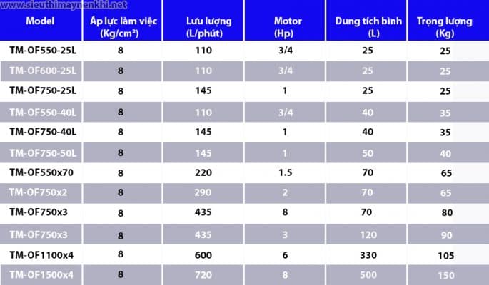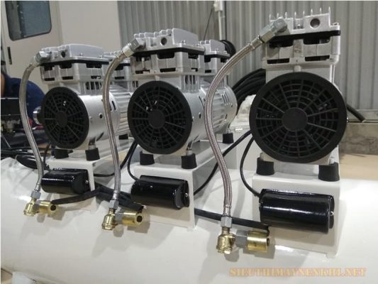 - Máy cấu tạo gồm 3 đầu nén nén song song bơm hơi trực tiếp xuống bình chứa.