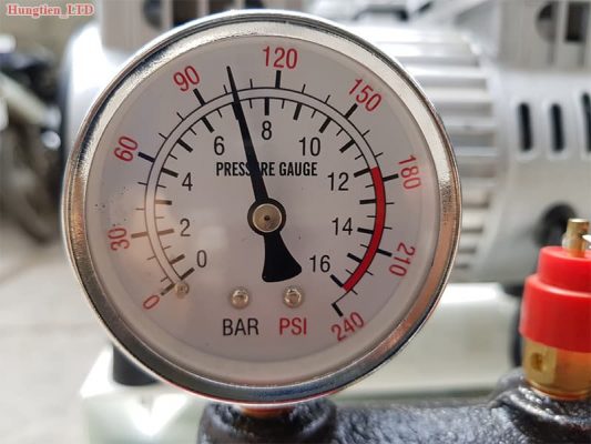 - Đồng hồ chỉ thị áp lực khí trong bình chứa rõ nét.