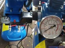 Cụm đầu ra gồm có 2 khóa hơi ra,một đồng hồ áp,1 van an toàn và 1 công tắc áp lực.Công tắc áp lực bật tắt máy theo sự điều chỉnh ngưỡng trên ngưỡng dưới(6-8kg/cm²).Thông thường máy sẽ chạy đến ngượng vạch đỏ trên đồng hồ khoảng 8kg/cm² quá vào ngưỡng đỏ(công tắc áp lực hỏng máy không tự ngắt) tức là vào ngưỡng nguy hiểm không tốt cho máy.Van an toàn sẽ mở để xả khí giảm áp bảo đảm an toàn.quý khách nên ngắt điện báo kỹ thuật.