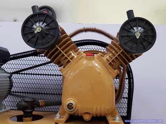 Pegasus TMV-0.17/8-180L sử dụng đầu nén 2 xi lanh.Khí nén được nén song song rồi nén xuống bình qua van 1 chiều để đạt tới áp 8kg/cm²máy sẽ ngắt.